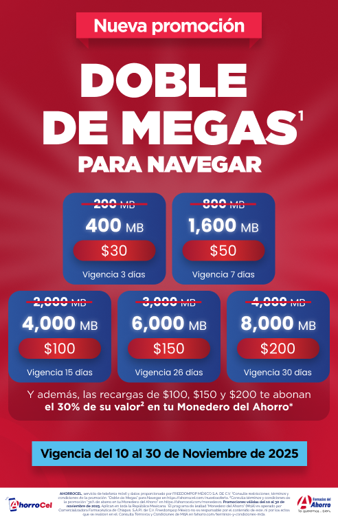 *Consulta restricciones, términos y condiciones de servicios ilimitados en https://www.ahorrocel.com/usojusto
