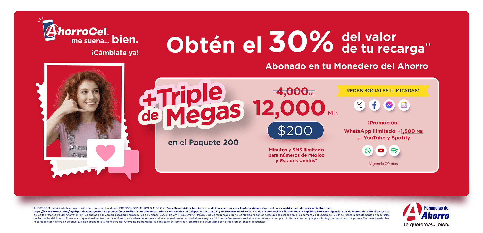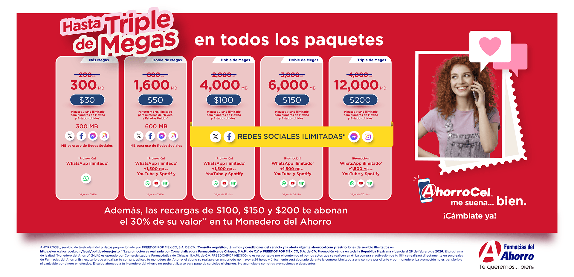 *Consulta restricciones, términos y condiciones de servicios ilimitados en https://www.ahorrocel.com/usojusto